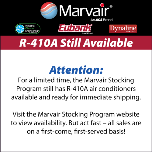 For a limited time, the Marvair Stocking Program still has R-410A air conditioners available and ready for immediate shipping.